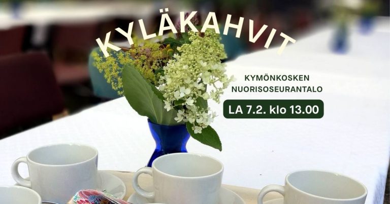 Tervetuloa viettämään iltapäivää kahvittelun ja leppoisan seurustelun merkeissä nuorisoseurantalolle (Kellantie 12). Kahvittelun lomassa vaihdamme kuulumisia ja kerromme Kymönkosken kuohut -hankkeen tulevista toimenpiteistä.